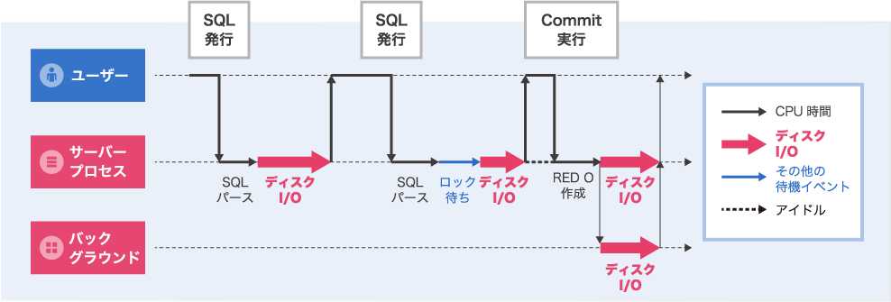 Oracleの性能は、プロセスがCPUを使用していない時間帯(=待機時間)に大きく左右されます。待機時間は様々な待機イベントによって発生しますが、中でもディスクI/Oの待機イベントは長い時間を占めることが多く、Oracleの性能を診断するうえで注目すべきポイントでした。(I/O待機時間が少ないOracleデータベースも存在しますので、すべてのケースで当てはまることではありません。)